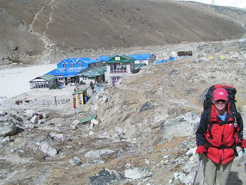 Photo is of Christi hiking out of Gorek Shep near Everest Base Camp. (October 2005)