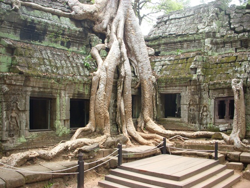 Photo is of nature re-taking the temples of Angkor Wat (Cambodia).
