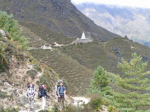 Christi, Becky, and Marc hiking from Namche Bazaar to Tengboche.