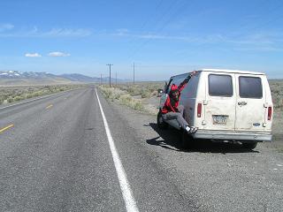 May 6: Made It to Washington State for Mt. Rainier's Liberty RidgeUpdate From An Email:From Bishop, CA, we got the van "fixed"... but 15 miles out of town, we got pulled over by an A-hole cop. Van was smoking galore... burning off all the oil that had spat onto the engine. The van oozed smoke, murder, drugs, and everything else that could make cops want to pull it over. Told him we were heading to Reno, NV... he just told us to "get the hell out of his county." Like it's really "his!" He seemed like one of those dudes who was pushed around as a kid... and now is an "authority" figure. Oh well. Have your county, man. 5 miles later, again... got pulled over by another cop! As he walked up, he had his hand on his gun... "How many people in the van?" Ummm, just two? "You sure?" I wanted to say, ...we're just dirt bags, not killers. He looked inside to make sure we didn't have any dead bodies or kidnapped people. He told us, also, to get the hell out of his county. We left his county.. without any bodies. Drove north on US395 ..a must drive road! Absolutely beautiful! Made it to Reno where we tried to find a casino with a buffet. All were closing up cuz it was 10pm. What's up with that? Vegas' buffets are 24 hrs! We drove by a place that advertised "Girls on Spring Break"... hmm... that'd be nice to see. Nay, probably too much $$. Oh well... this was a climbing trip... We ended up eating in some restaurant in a casino... that was above Chippendales. Next to us at the restaurant were 5 old ladies with lays(?) around them... they had just come from Chippendales and were ecstatic. Loud, boisterous, and ..."excited?". Back on the road again till 2am where we slept on the side of a road. Up at 6 am and off towards the Oregon border. Made it ALLLLLLLLLLLLL the way through OR. Road through east OR is absolutely beautiful beautiful beatiful BEAUTIFUL BEAUTIFUL. Get the idea? Made it to Bend, OR then onward to Salem, OR.. then Portland, OR. Started to rain. And guess what? Wipers kaput! Van started to smoke a little. Pulled over... and guess what? Hood release lever broke! br> Dude at the gas station was proud to help us, "OK, let's do this the easy way," he said as he put his jacket on and got this leatherman knife. He was the Wiper King! Onward we went after visiting his kingdom. Just north of Portland, OR... van's smoking freaked us ...and tooo many cops on the highway. So we went off on smaller roads. Got to Whittaker Mountainerring, Inc (now in conjunction with RMI) around 8pm. AWESOMEEEEE!! The van made it! Made it! Made it!! We are hanging out at the mountaineering shop determining what to do at the moment. Mt. Rainier's Liberty Ridge is on our thoughts.