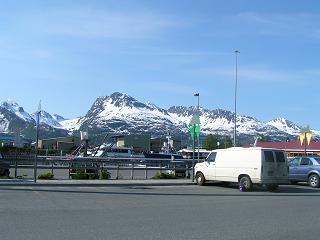 Oh, one more Harbor Rd resident: truck next to the two vans on the left. From here, the restaurant where I work is only a 5 min walk, the store where I buy my daily ice cream is only a 5.1 min walk, the public restroom is only a 2 min walk, the laundry place where I do my laundry once a week is 3 min, and the weekly shower place also 3 min. Life in Valdez is good.