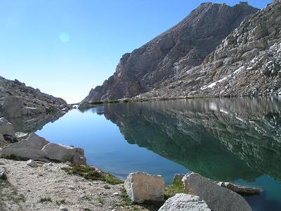 OK, over to the Mt. Russell area. We hiked in and camped at Upper Boy Scout Lake -- here it is in the photo with symmetric reflections.