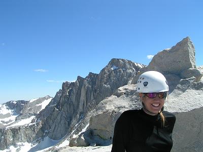 At ~13,000 ft, here's Christi with Lone Pine Peak in the background. It's the peak with the slope on the left side of the photo.