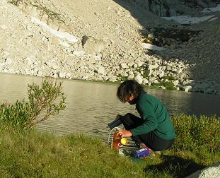 After the summit, we returned to camp at Upper Boy Scout Lake. Here I am gettin' some water. I'm also known as the "Mountain Serial Killer". Hehehe...