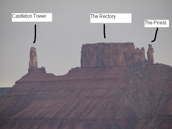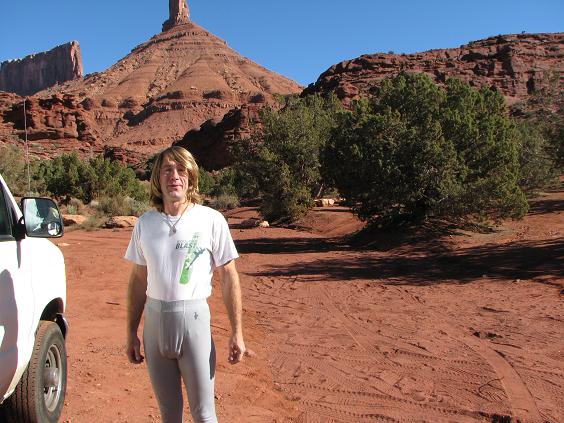 Woke up to this thing! Yikes! Castleton Tower, a 400 ft ...well, thing that just stands up like... well, anyway. Took the van, Version 2.0, since Version 1.0 was left in Alaska.