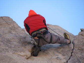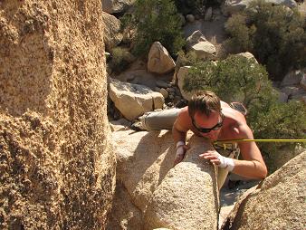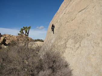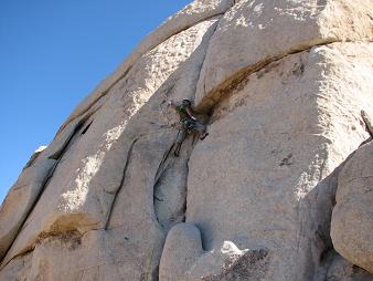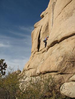 We left and went to J-Tree. Here's Jodie leading Pinch Rib 5.10a.