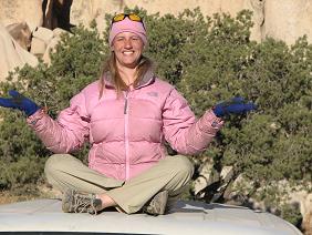 Christi gettin' ready to dyno the final crux move of something we found and were just playing around with as we waited for another climb.