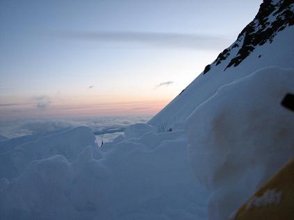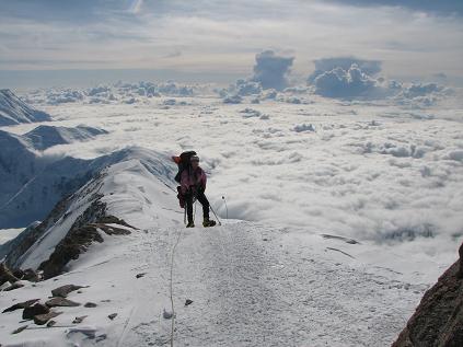 Up higher on the ridge almost at the 17,000 ft High Camp. View was awesome! You can see the clouds being stuck on one side of the mountain range.