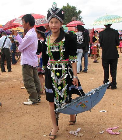 Her costume is different but the head-dress is the same. She may be a Hmong who came to the festival from China.