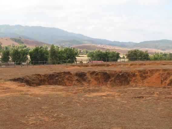 The following day, we took a tour around Phonsavan. It included seeing bomb craters made by the Americans during the secret war in Laos, visiting a Hmong Village, trekking to a waterfall, and seeing the Plain of Jars. Here is one of many bomb craters left by America during the "secret war" (it took some time before Congress found out about it).
