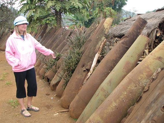 We went to visit a Hmong Village nearby. They collect these bombshells for metal scrap (either for themselves or to sell to Vietnam). These bombshells are used for everything.