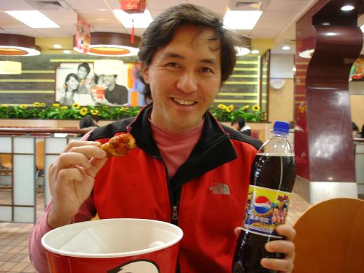 The food in China leaves a lot to be desired. After a month and a half of thrice reheated rice and cabbage swimming in oil, Tauru went bonkers at the sight of a KFC. This was to be a "spiritual" experience.