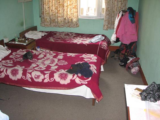 Here's an example of the room. $4 per night in the heart of Kathmandu. Now that's a deal! But at a cost... electricity only from 5pm to 9pm, and hot water? Best chance is between 1pm and 4pm. Probably solar heated. But it was worth... for our "office" on the rooftop.
