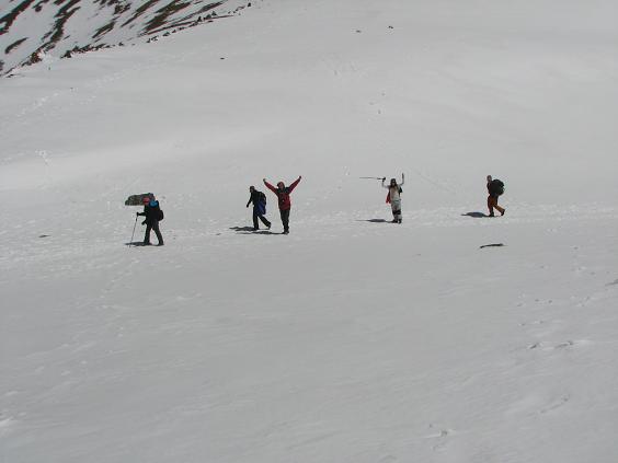 "Don't slip!" Here's the "group" delicately working their way to the pass: Leroy, Gideon, Beks, and Max. Katja and Amrit went on ahead - she didn't want to pause until she was on top. Good thinking! This is crazy!
