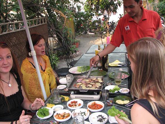 Tauru chose a Korean restaurant to celebrate his b-day bash. A couple of folks joined. And there was barbeque, Tauru's favorite. Here's Ganesh (named after Lord Ganesh, the Hindu god with an elephant's head) grilling for us.