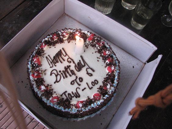 After dinner, we went back to the hotel's rooftop for Tauru's birthday cake. The one candle was symbolic of his age, or his IQ, or his maturity, or whatever. ...Or, perhaps, his "one-ness" with the world.