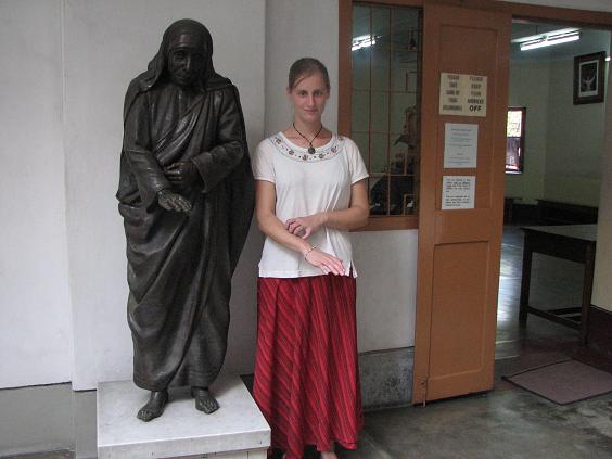 Mother Teresa, who is now either a Saint or close to being one, and Calcutta are synonomous to most Westerners. Everyone has heard of Mother Teresa, and everyone has linked her with Calcutta, or Calcutta with her. For good reasons. She spent a good chunk of her life helping the poor here (early 1950's to her death recenlty). We went to see her mission. Here's a statue of her.