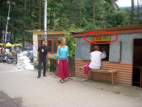Here's another cool place. As the sign says, it's actually a "Tea Hut." Tea, and he does serve omelette sandwiches ...but that's it. We waited for the chap wearing the white shirt sitting in front of the Tea Hut to leave so that we could take the bench and watch life go by while sipping on chai.