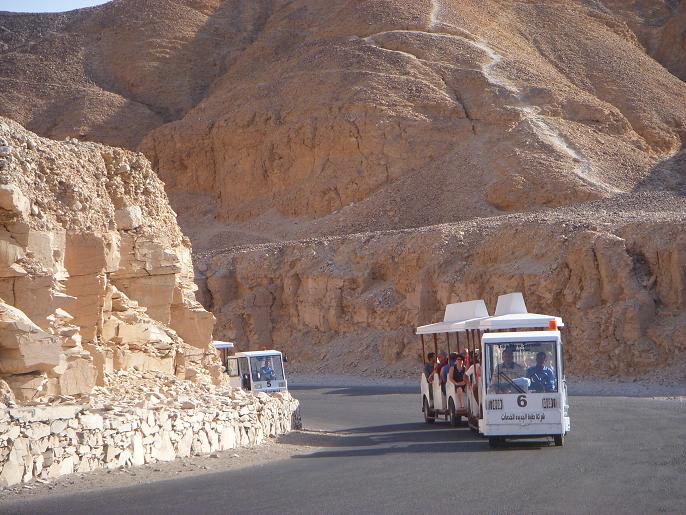 After the ticket office to the Valley of the Kings, MOST tourists take these carts ...to go a distance of ...say 1/8 mile! Talk about lazy! We walked.