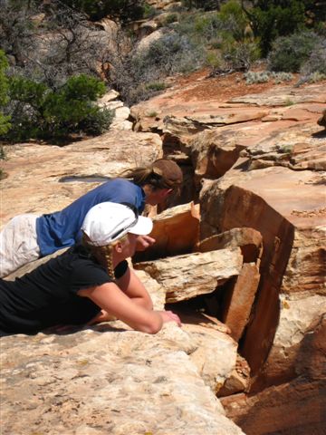 Christi and Brenda chillin' in a cove between rappels, great views!