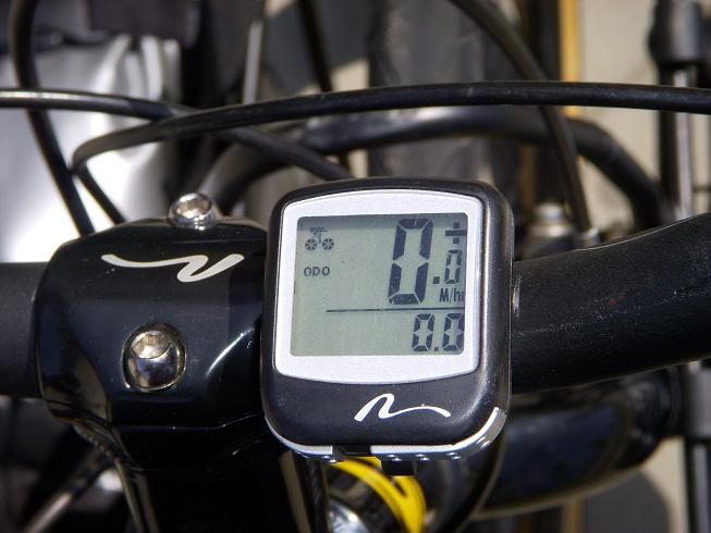Some 35 miles out near Corona, CA, with the bike fully loaded, Tauru walks it up the hill.