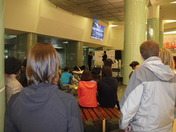 That drink (orginally purchased by Nikki, then passed to me, then finally given to Anna who was the only one Korean enough to fully enjoy it) is a traditional Korean sweet beverage with such things in it as rice and corn. It's - interesting.