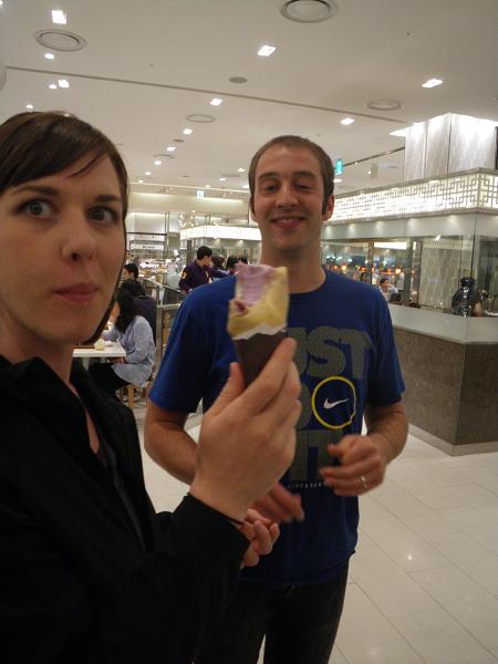 Oh man, you were enjoying a gelato-filled crepe while we were drinking rice-corn drinks! That looks GOOD! I bet Ben is gonna take that from you...