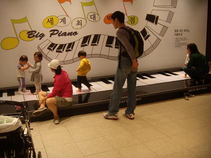 Shinsegae Mall is the largest department store in the world. On the fifth floor (or was it the sixth?) is the childrens department - complete with the most fun looking piano every. This puts "Big" to shame. Sorry, FAO Schwarz - meet Korea!