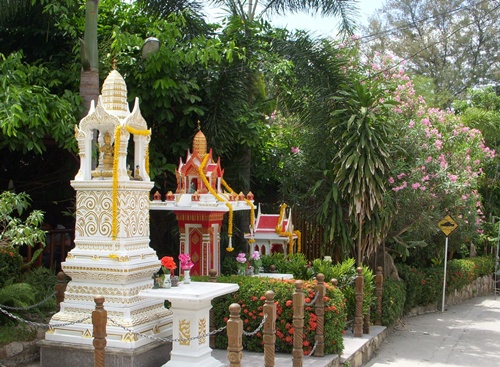 In America, we have mailboxes. We might deck them out as little farm houses or paint them with something patriotic. In Thailand, they have shrines. If I remember correctly, these are to bless their residence and ward off evil spirits, keeping their home safe.