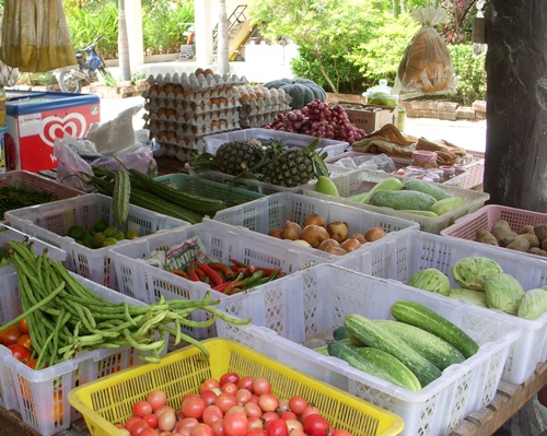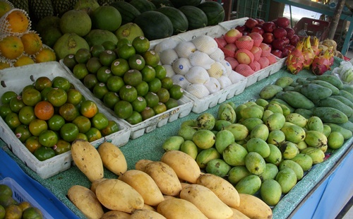 Another fruit stand. Those yellow mangoes in the front are amazing. The green mangoes we get back home are good, but this is so buttery-tender and sweet - I could eat them forever! (Especially with sticky rice and coconut milk!)