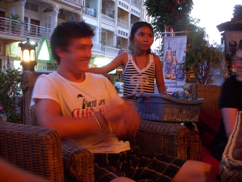 Kids flock to foreigners trying to sell all sorts of things. This girl had book and bracelets, and she was really good. She made a few sales, too. She stuck around our table for over an hour!