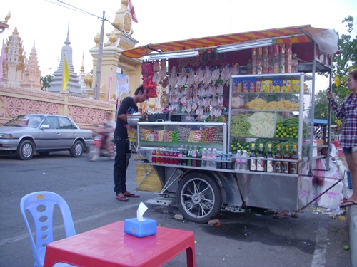 The temperatures were soaring (93! and HUMID) and most things were closed. I'd already been in the city several days, so don't hate me when my interests turn to food! Oh how I love food... but there is a visit to Wat Phnom mixed in here!