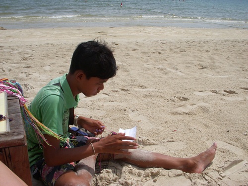 After this kid made me a free "friendship bracelet" and told me that since I have no brothers, he is my brother, I decided to humor him and have him make me a name bracelet.