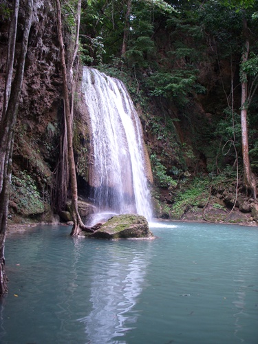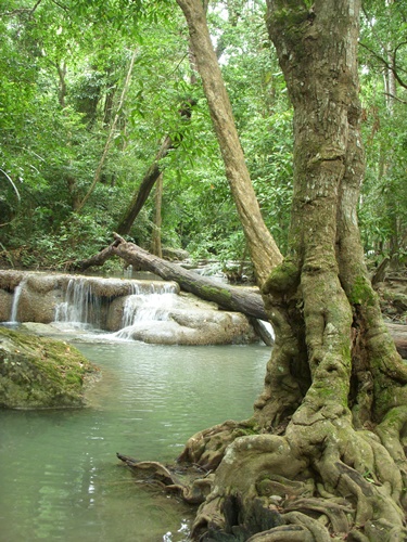 Christi checks out some waterfalls near Kanchanaburi, Thailand.